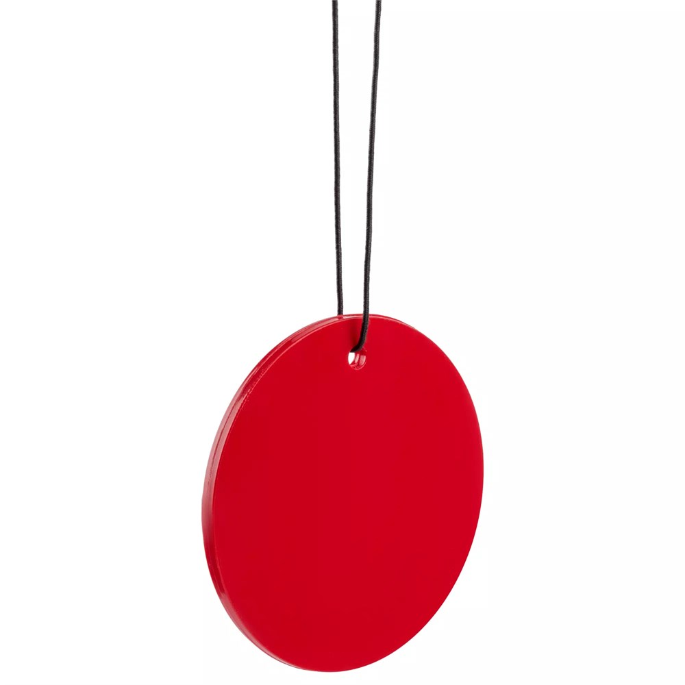 Круглая пластинка из ароматизированного пластика на подвесе-резинке. Срок службы — 30 дней.