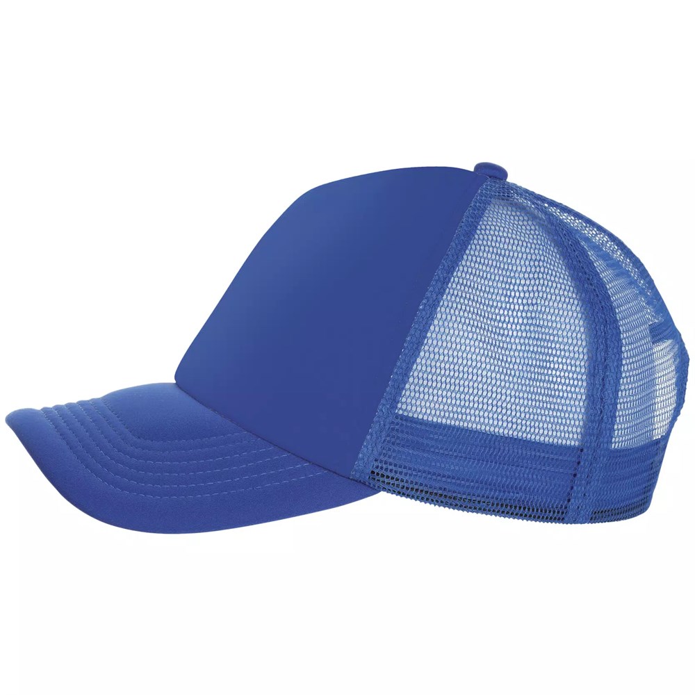 Бейсболка с 5 клиньями из сетки. Поролон в переднем клине (5 мм) и козырьке (3 мм). Регулируемая пластиковая застежка.