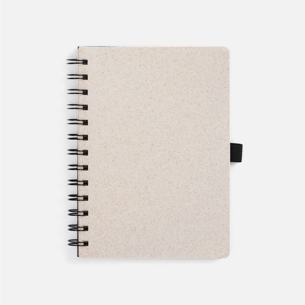 Блокнот на спирали из пшеничной соломы с резинкой для ручки.
