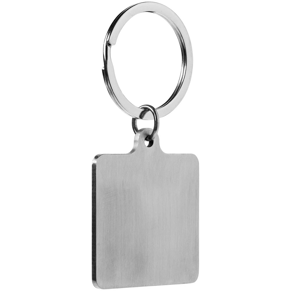 Лаконичный металлический брелок квадратной формы.