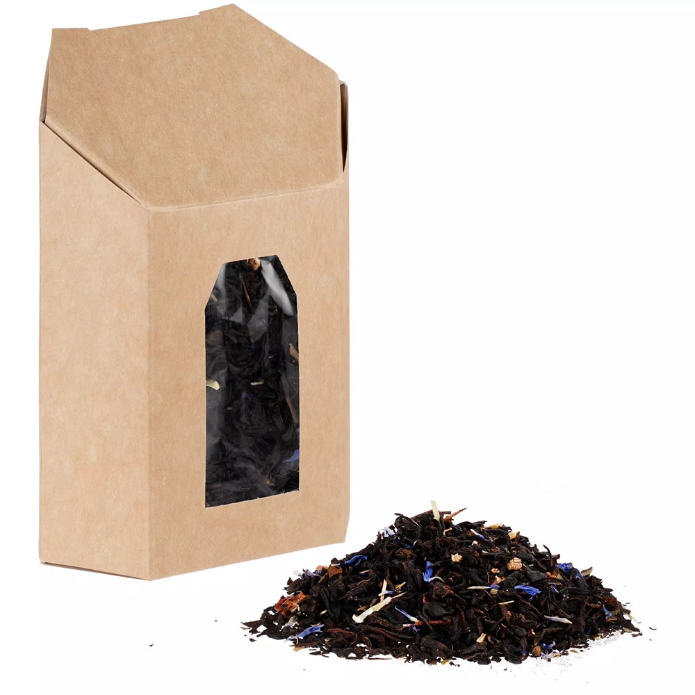 Праздничный купаж на основе черного чая, украшенный цветочными лепестками и кусочками клубники.