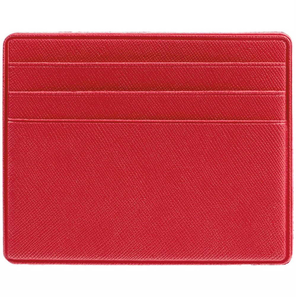Чехол для карточек из искусственного материала, имитирующего сафьяновую кожу, с шестью отделениями для кредитных карт и одним — для сложенных купюр.