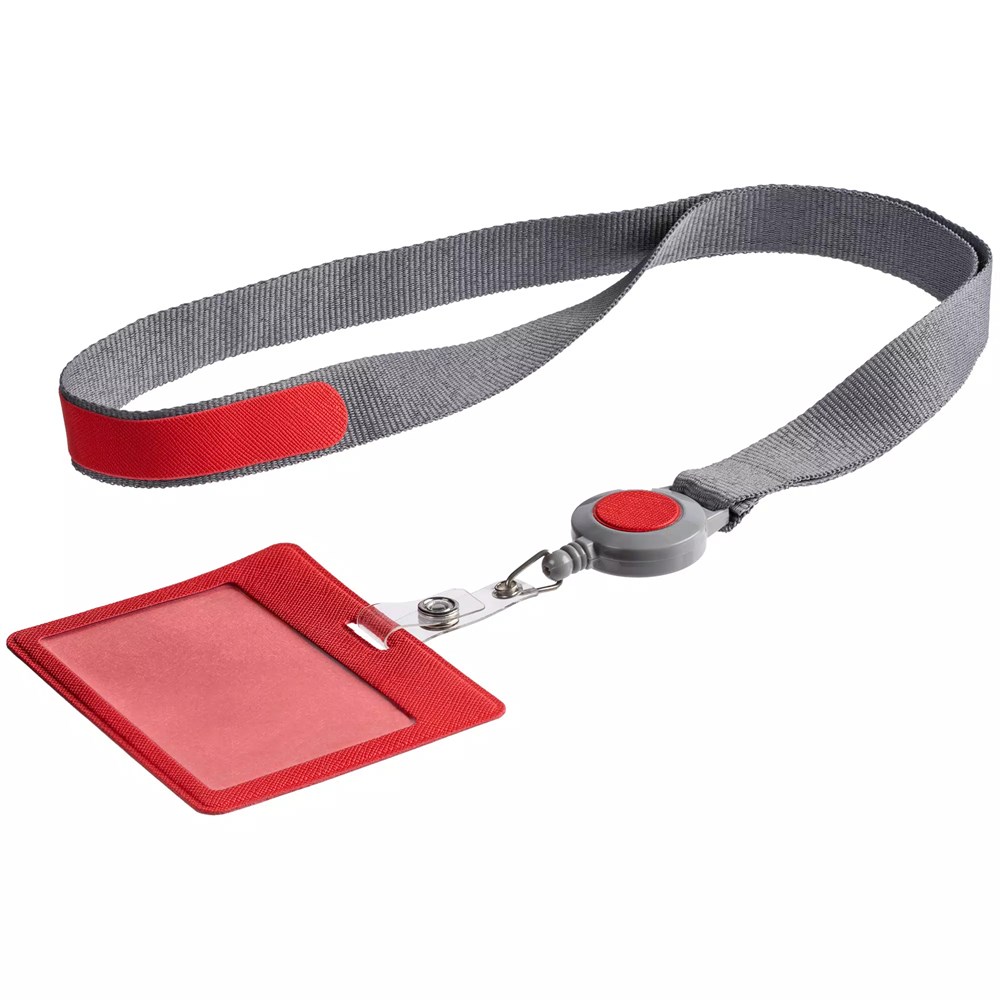 - Лента для бейджа с ретрактором Devon, серая с красным