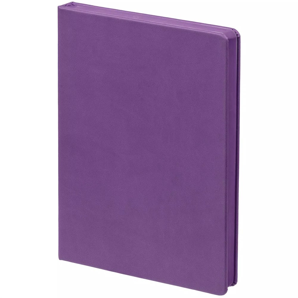 Ежедневник с твердой обложкой и тонированным обрезом. Выполнен из материала Latte, фиолетовый, дополнен ляссе в цвет обложки.