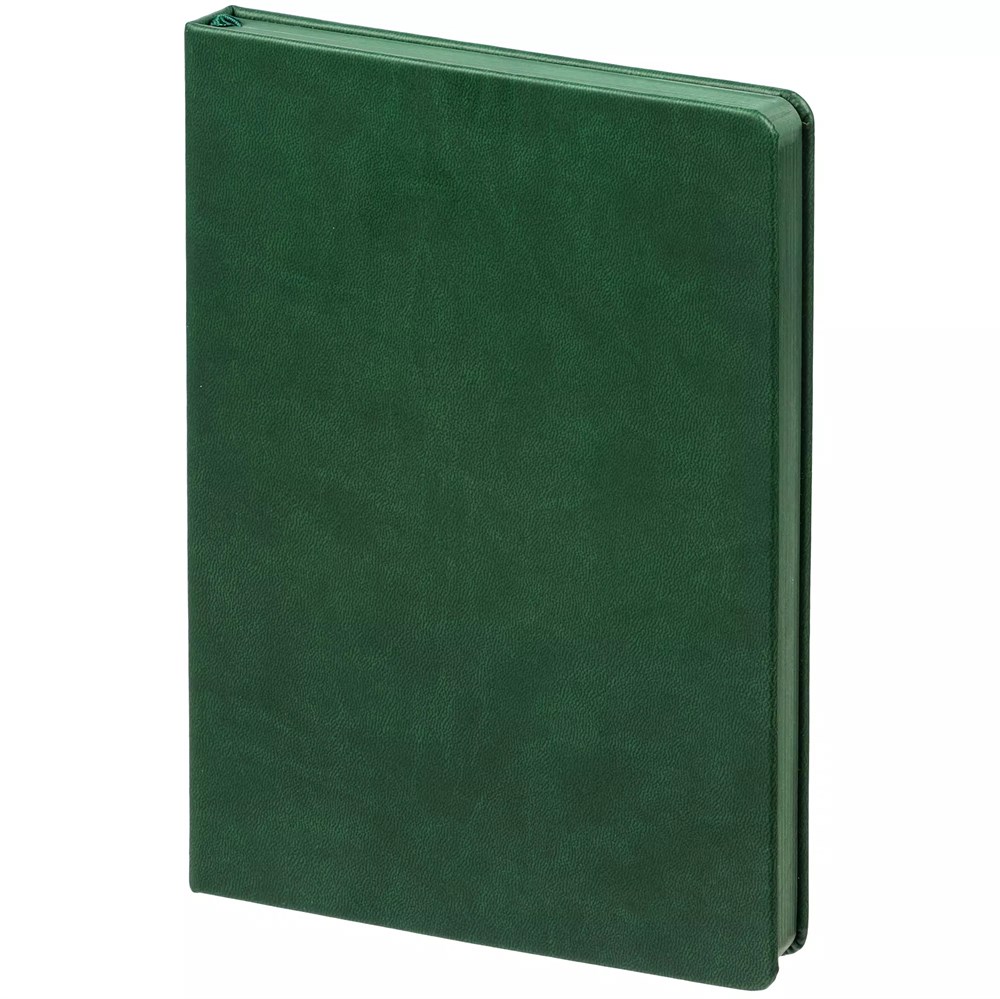 Ежедневник с твердой обложкой и тонированным обрезом. Выполнен из материала Latte, зеленый, дополнен ляссе в цвет обложки.