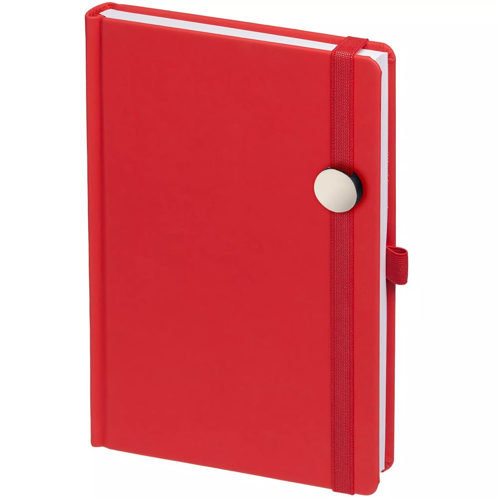 Ежедневник с твердой обложкой без поролона, выполнен из материала Soft Touch Ultra, красный РР, дополнен резинкой шириной 1 см, петлей-резинкой для ручки, капталом и ляссе красного цвета.