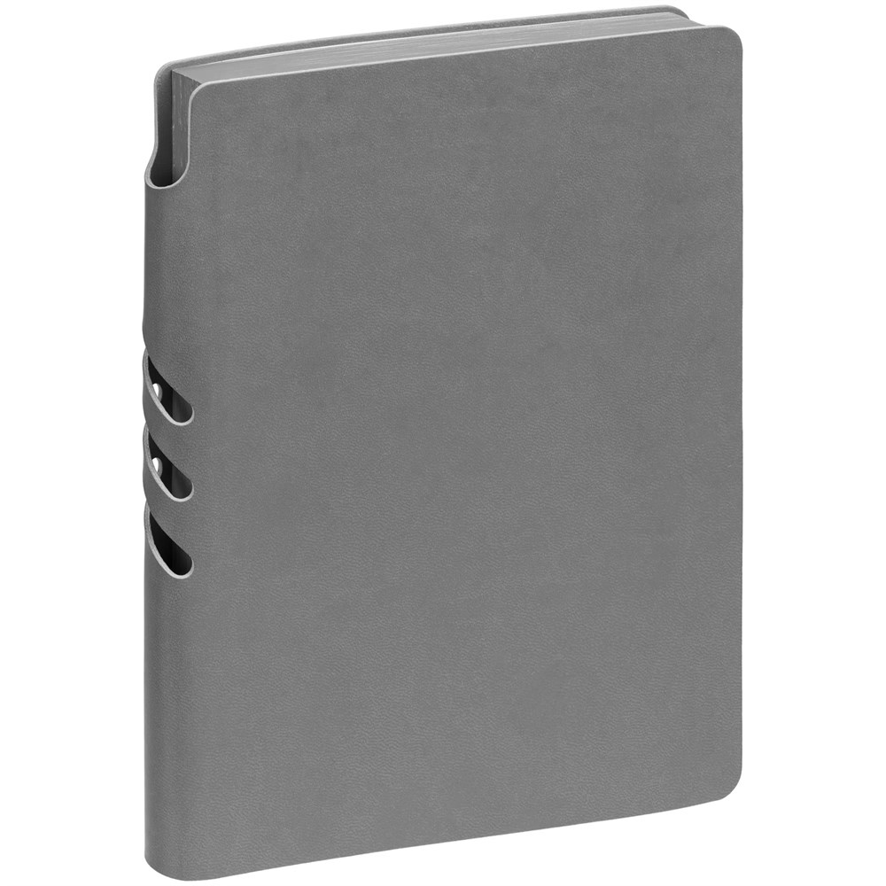 Гибкая обложка ежедневника выполнена из материала Latte, серый СС. Внутри корешка — специальное место для крепления ручки размером до 15х0,9 см.