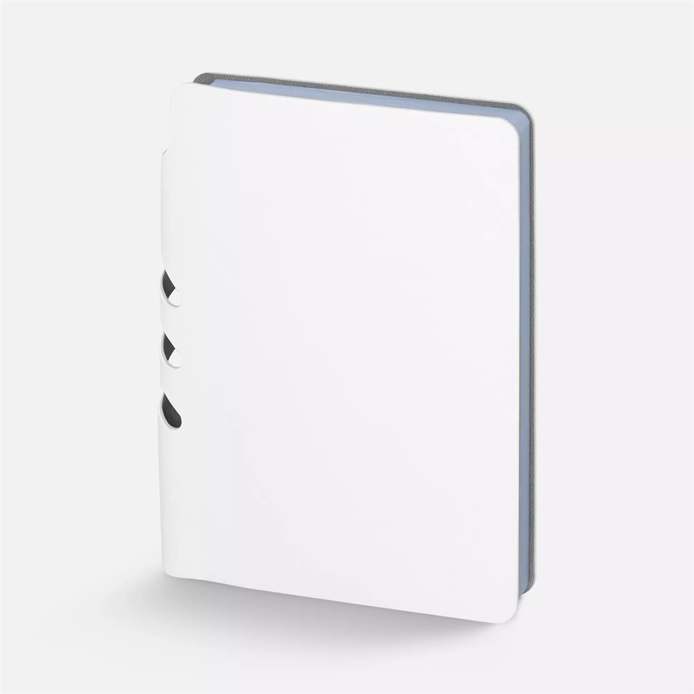 Ежедневник с гибкой обложкой выполнен из материала Soft Touch, белый BB и серого Latte (внутренняя часть обложки).