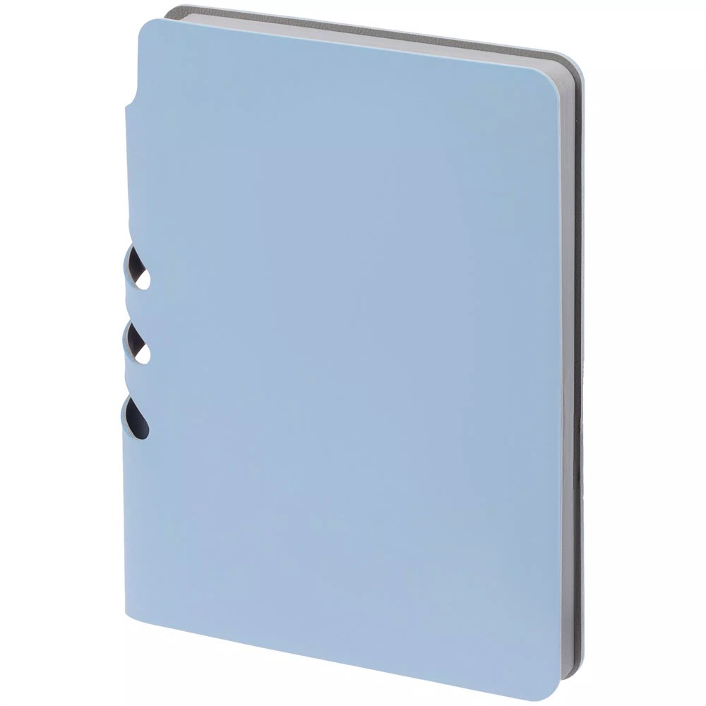 Ежедневник с гибкой обложкой выполнен из материала Soft Touch, голубой JJ и серого Latte (внутренняя часть обложки).
