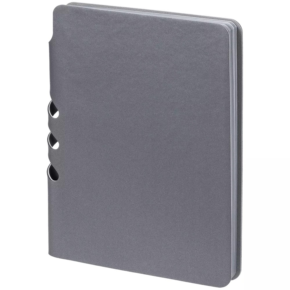 Ежедневник с гибкой обложкой выполнен из материала Soft Touch Pearl, серый СС и серого Latte (внутренняя часть обложки).