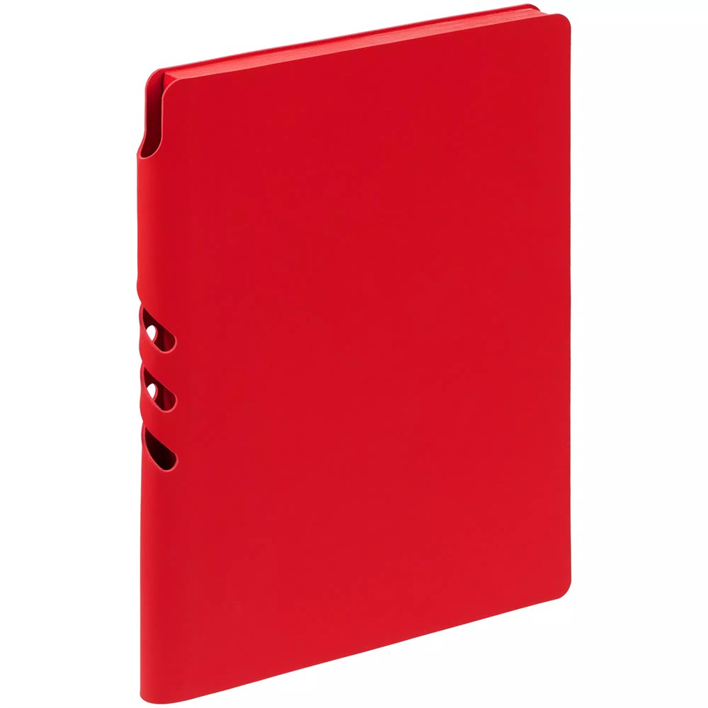 Гибкая обложка выполнена из материала Soft Touch Ultra, красный РР и Latte, красный РР (внутренняя часть обложки). Внутри корешка — специальное место для крепления ручки размером до 15х1 см.