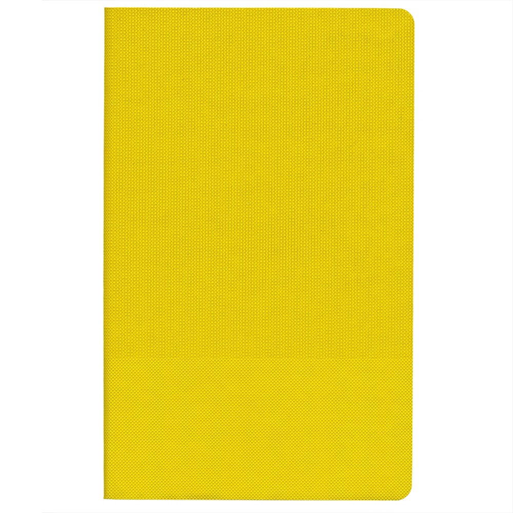 Ежедневник с гибкой обложкой, выполнен из материала Canyon, желтый КК, дополнен ляссе в цвет обложки. Блинтовое тиснение на обложке создает эффект вязаного полотна.