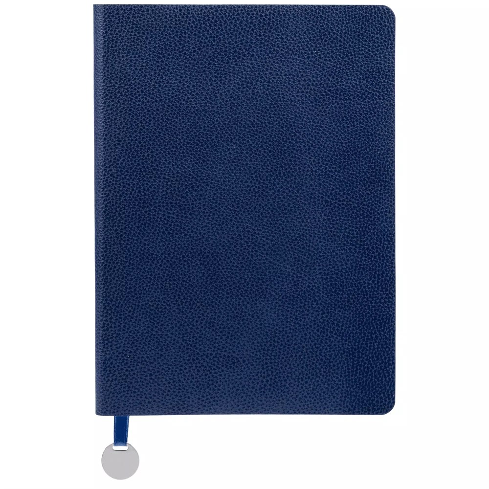 Ежедневник с гибкой обложкой, выполнен из материал La Fite, синий НН, дополнен ляссе в цвет обложки с металлическим шильдом.