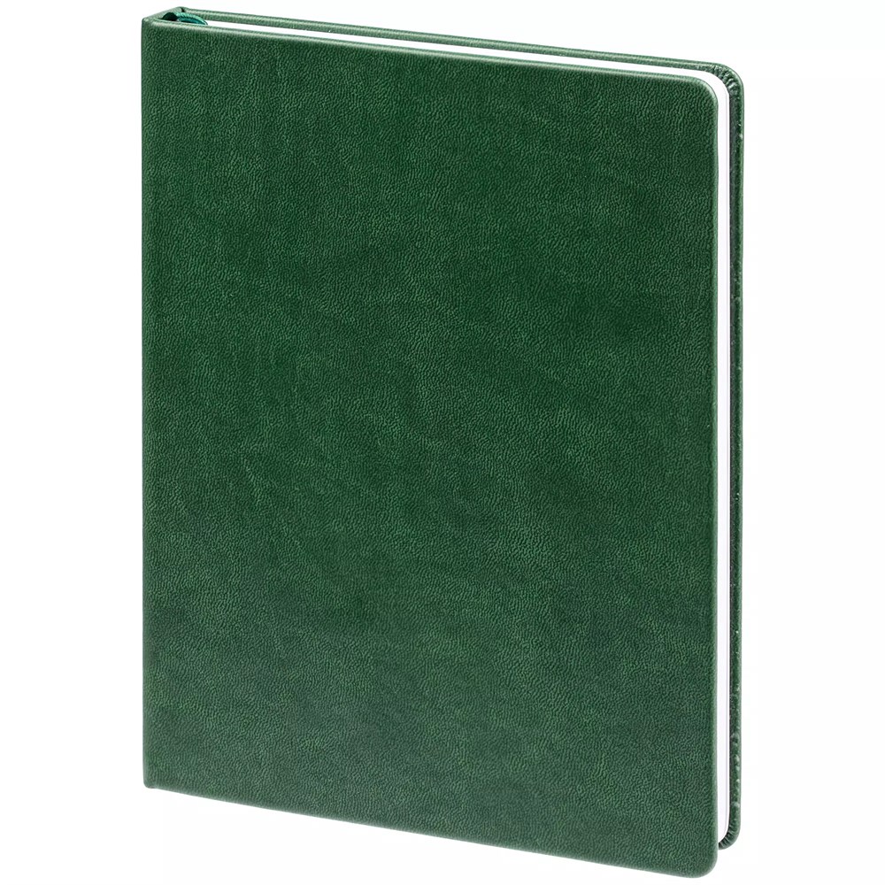 Ежедневник с твердой обложкой. Выполнен из материала Latte, зеленый, дополнен ляссе в цвет обложки.