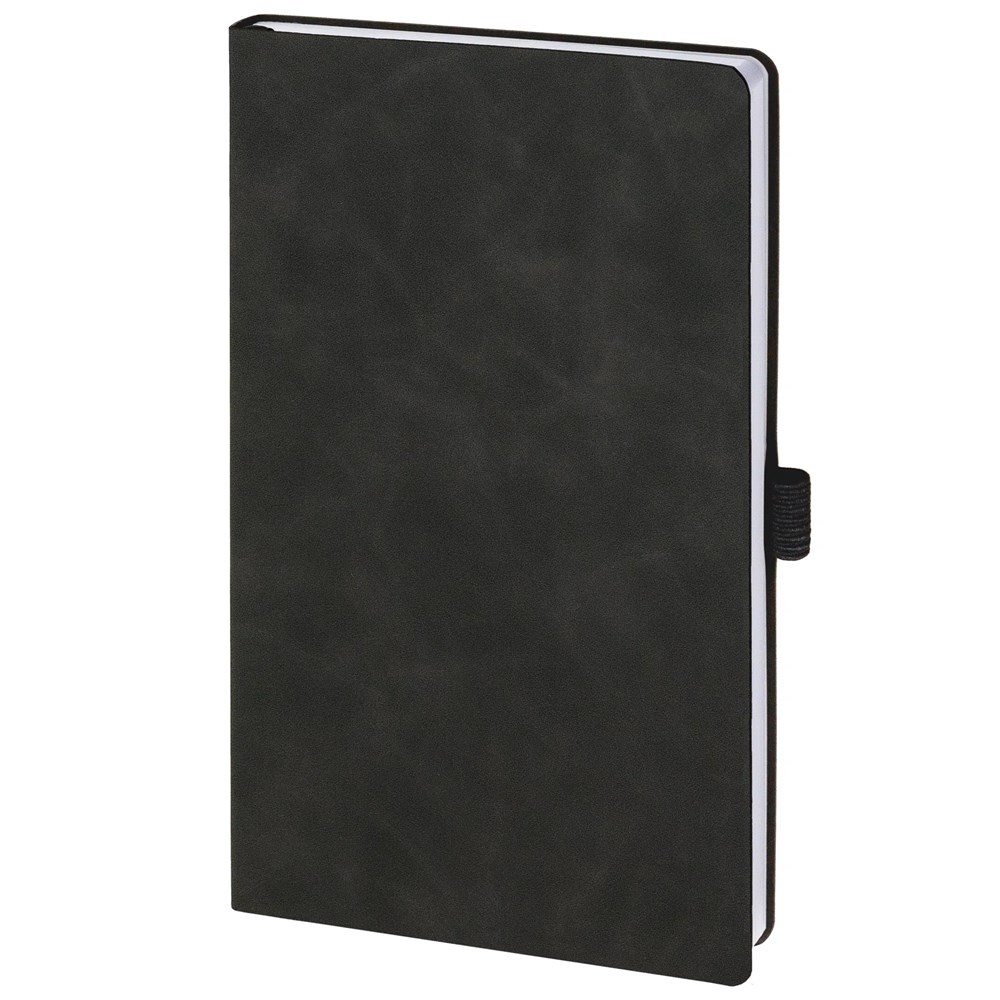 Ежедневник с гибкой обложкой, выполнен из материала Nubuck Touch, черный АА, дополнен ляссе и петлей-резинкой для ручки черного цвета.