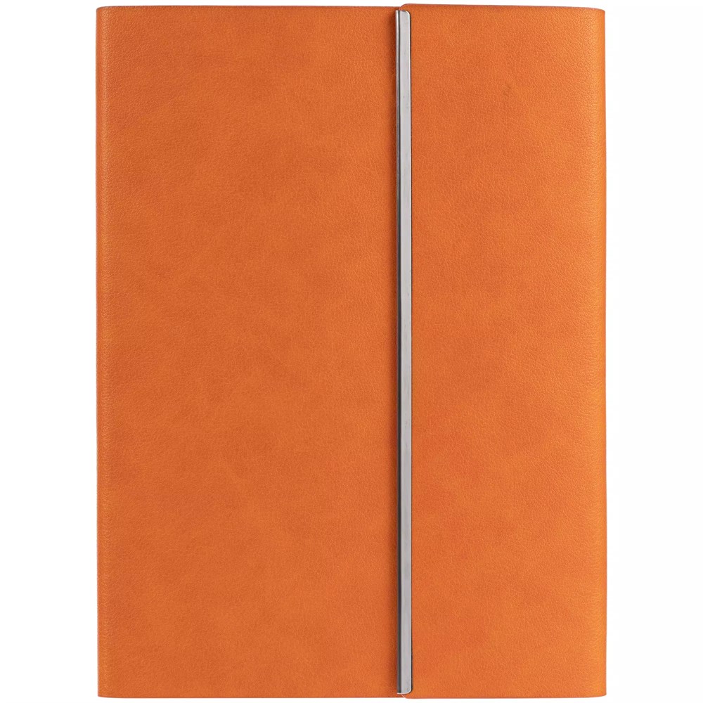 Ежедневник с гибкой обложкой, клапаном на магните и металлической отделкой клапана. Выполнен из материала Petrus, оранжевый ОО, дополнен серым ляссе.