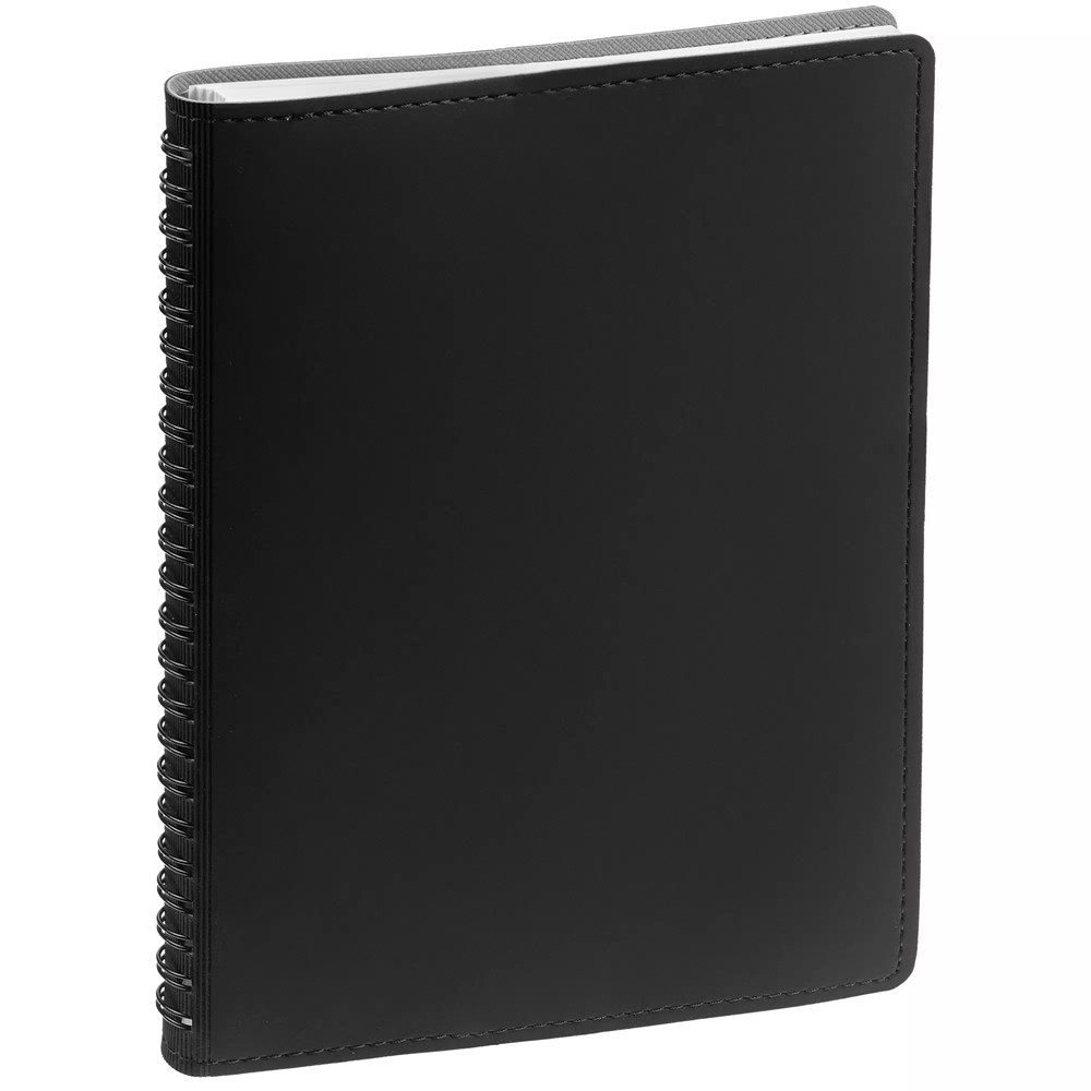 Ежедневник с гибкой обложкой, выполнен из материалов Soft Touch, черный АА и Nice touch,серый СС.