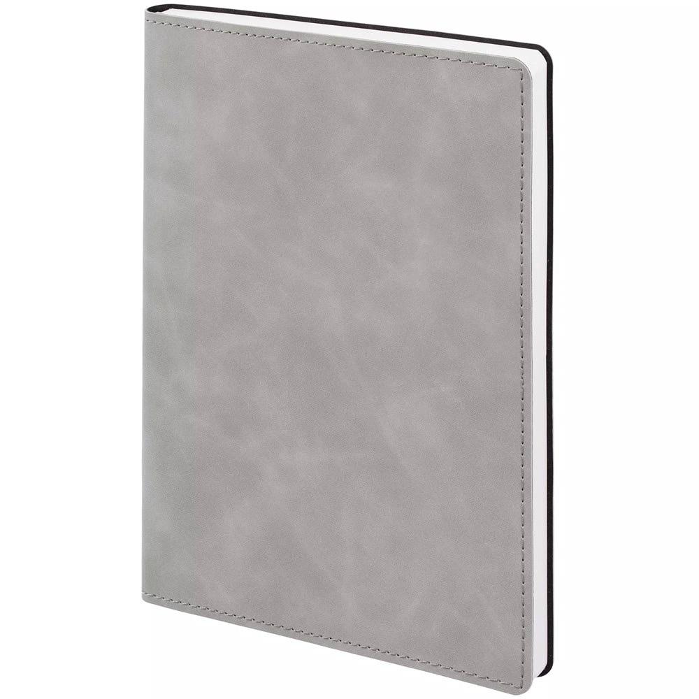 Ежедневник в клетку, с гибкой обложкой, выполнен из материала Nubuck Touch, серый СС, дополнен ляссе темно-серого цвета.