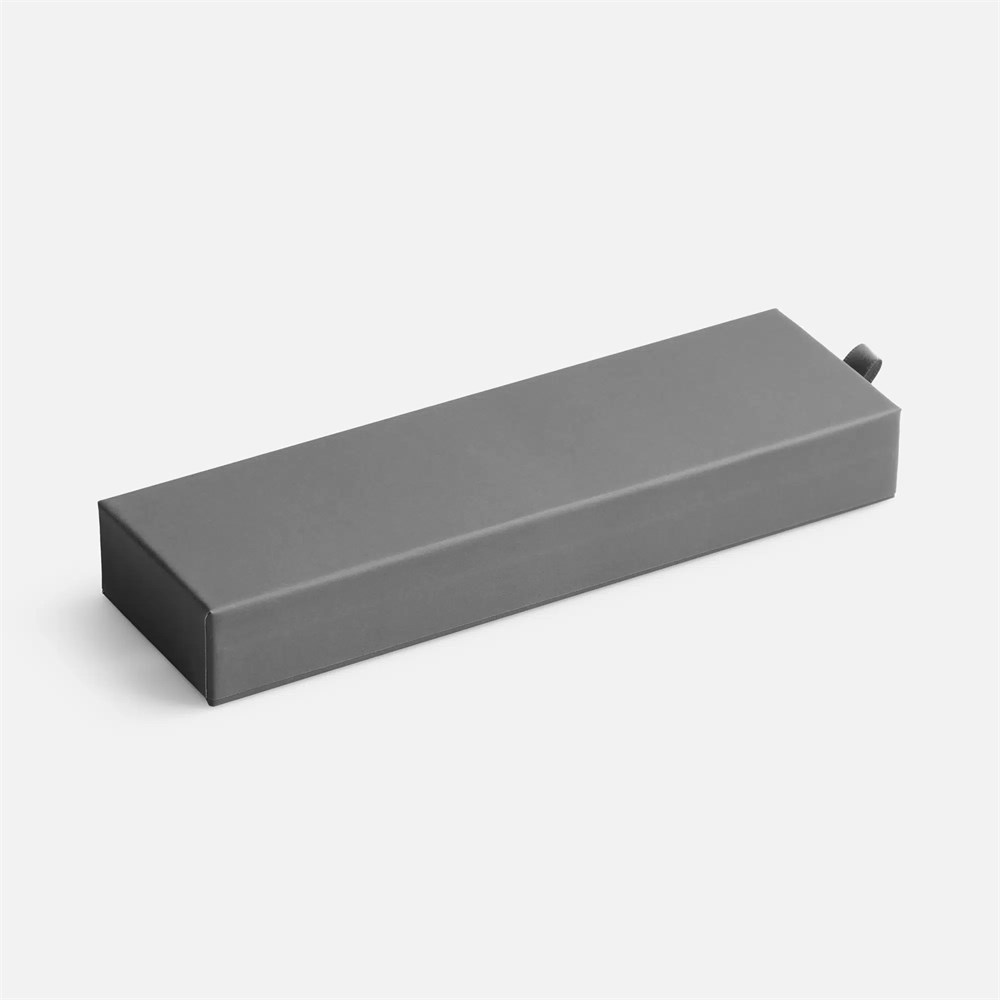 Картонный футляр с покрытием софт-тач с флокированным ложементом для одной ручки.