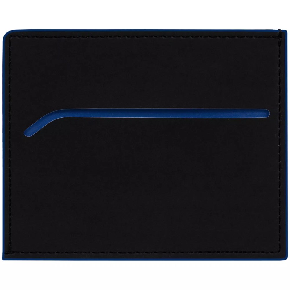 Чехол выполнен из материала Soft Touch Pearl, черный АА, дополнен окрашенным срезом края и внутренним карманом из цветного картона. Имеет 4 отделения для кредитных карт и 1 отделение для купюр.