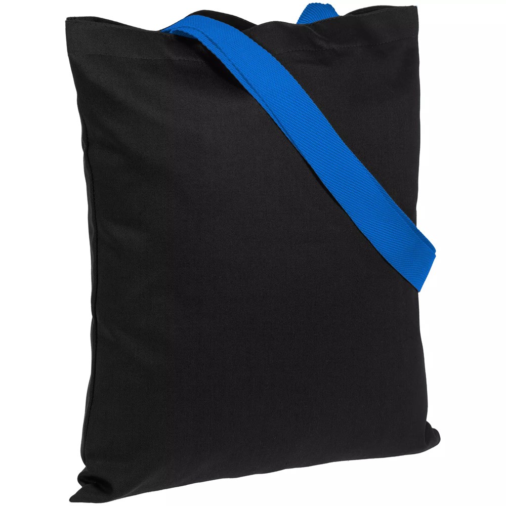 Холщовая сумка BrighTone, черная с ярко-синими ручками