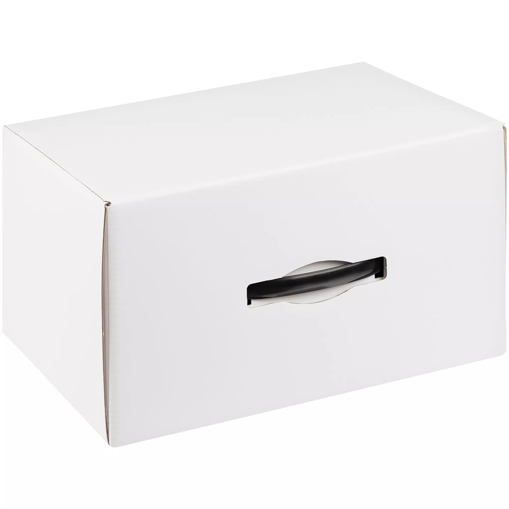 Самосборная коробка-шкатулка со вставной пластиковой ручкой.