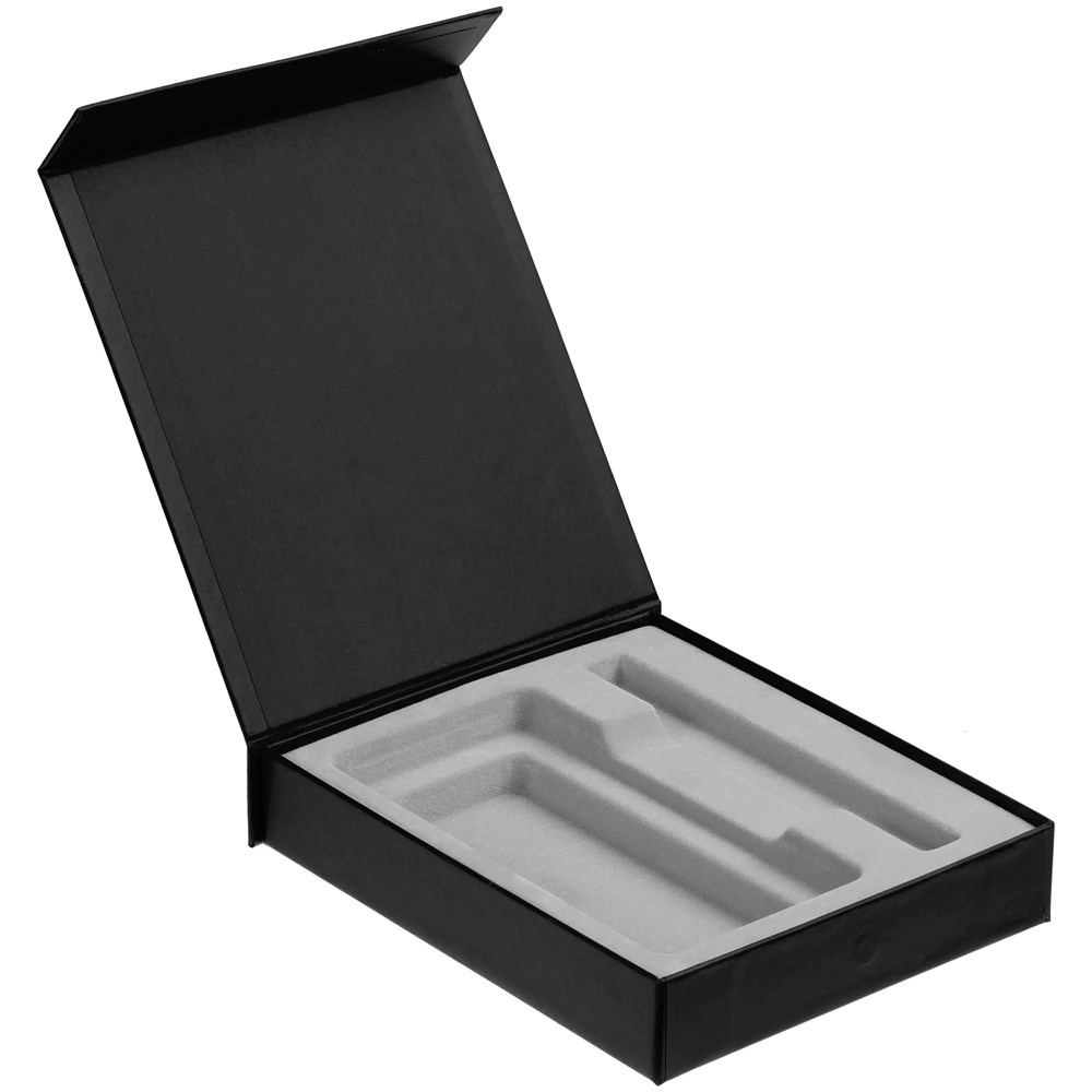 Подарочная коробка для аккумулятора 14,6х7,5х1,3 см и ручки 14,5х1,5х0,8 см с крышкой на магните и флокированным ложементом.