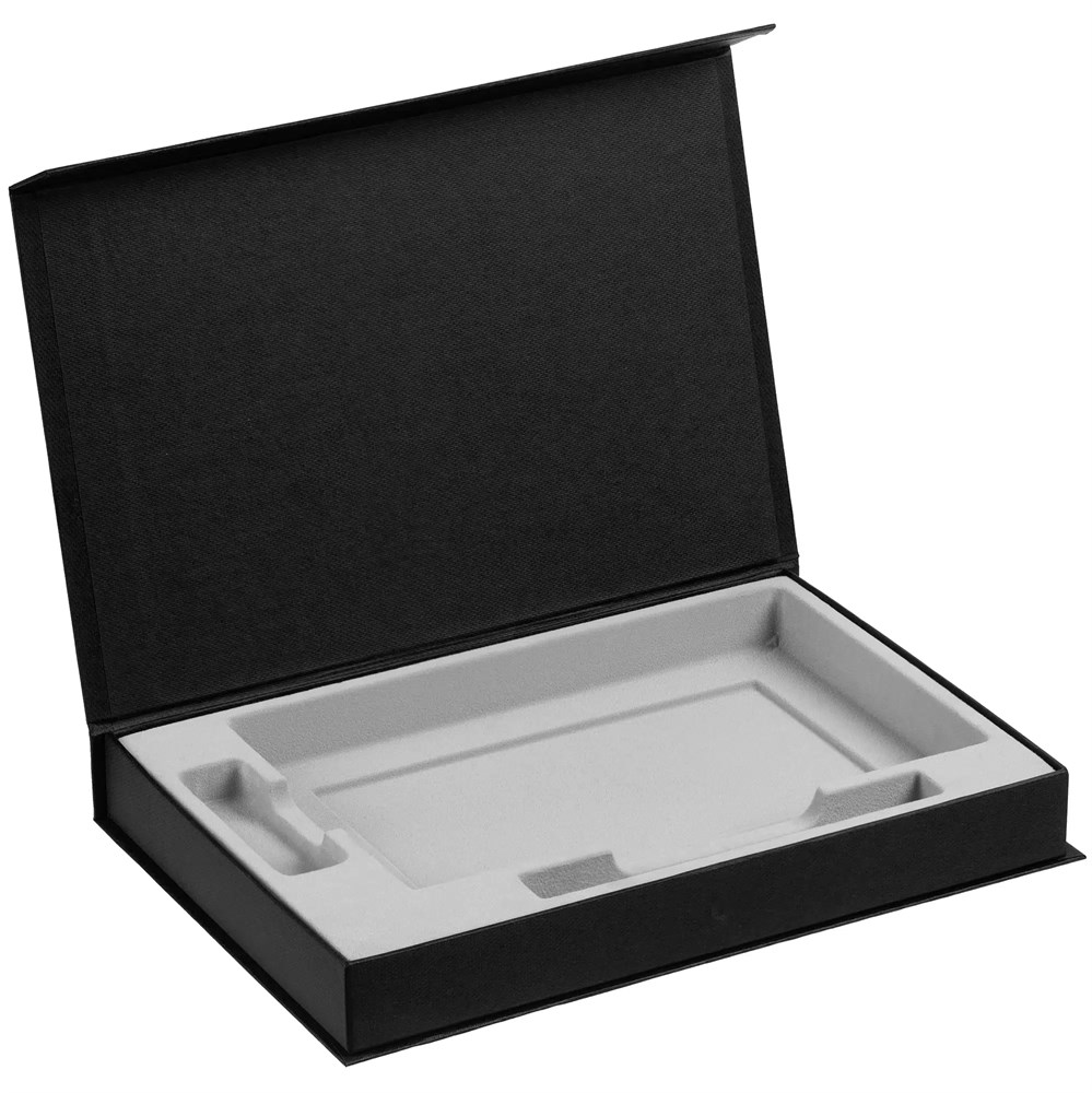 Коробка Silk с ложементом под ежедневник 13x21 см, флешку и ручку, ver. 2, черная