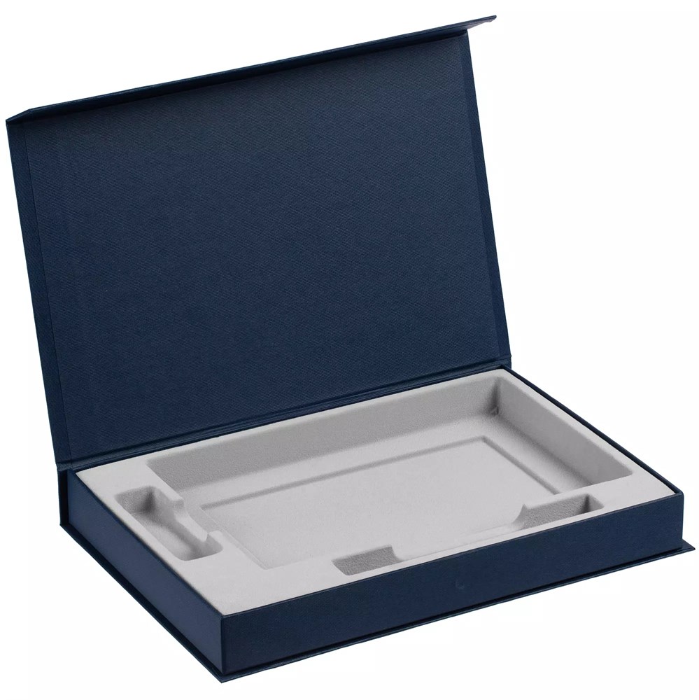 Коробка Silk с ложементом под ежедневник 13x21 см, флешку и ручку, ver. 2, темно-синяя