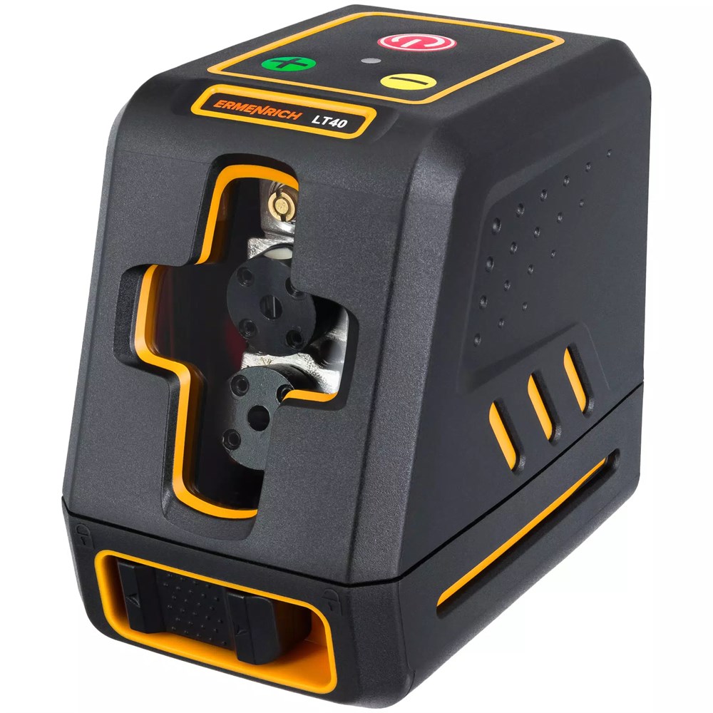 Автоматическая система компенсации, которой снабжена модель Ermenrich LT40, производит самовыравнивание лазерных лучей, помогая добиться точного результата и избежать последствий вибраций. Защита от пыли и брызг позволяет применять уровень в помещениях, где идет ремонт, и на стройплощадках.