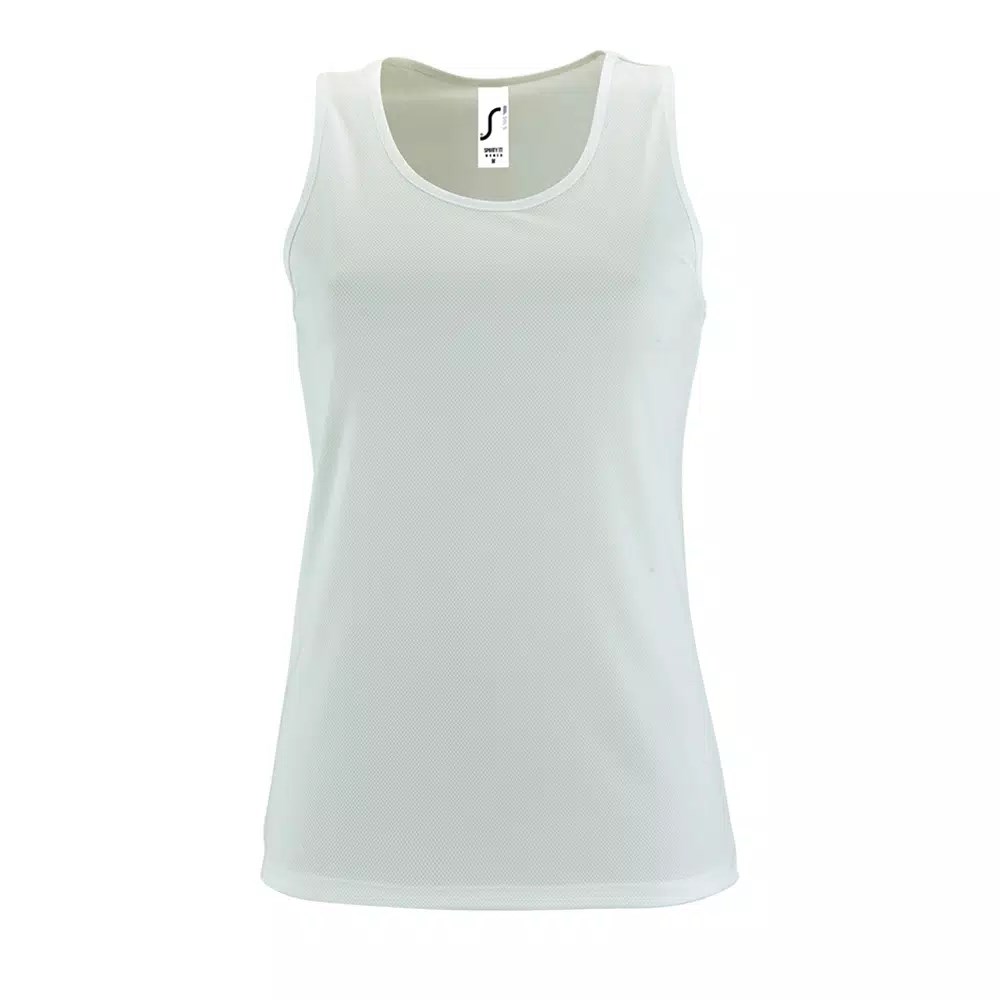 Майка приталенного кроя из спортивной сетки. Горловина и проймы обработаны бейкой.