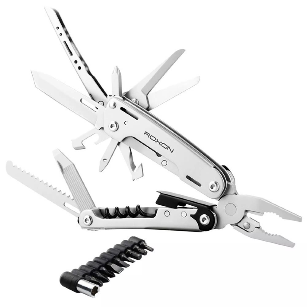 В комплекте мультитул, чехол и набор из 10 съемных бит.