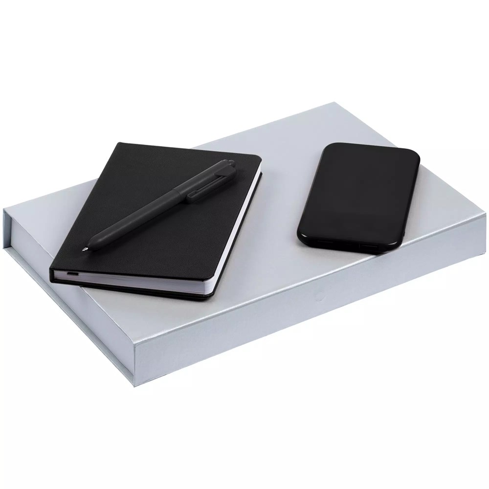 - Материалблокнот - искусственная кожа; аккумулятор - пластик; покрытие софт-тач; ручка - пластик; коробка - переплетный картон