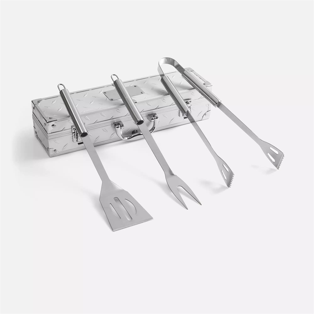 - Размерывилка: 35,5х3,5х2 см; лопатка: 35,5х7,5х2 см; щипцы: 35х4,2х6 см; кейс: 37х10х8 см