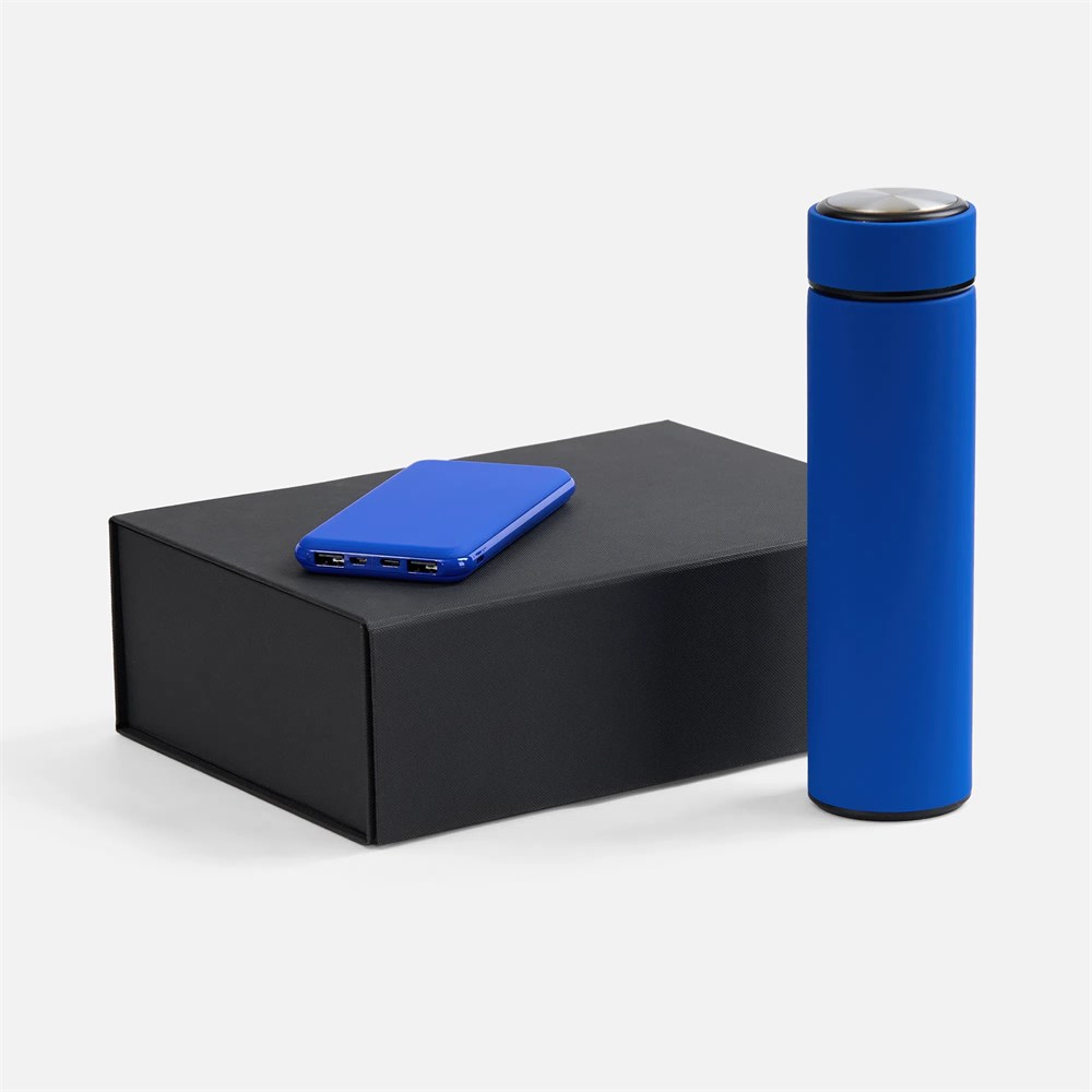 - Материалаккумулятор - пластик; покрытие софт-тач; термос - нержавеющая сталь, 304; покрытие софт-тач; коробка - переплетный картон
