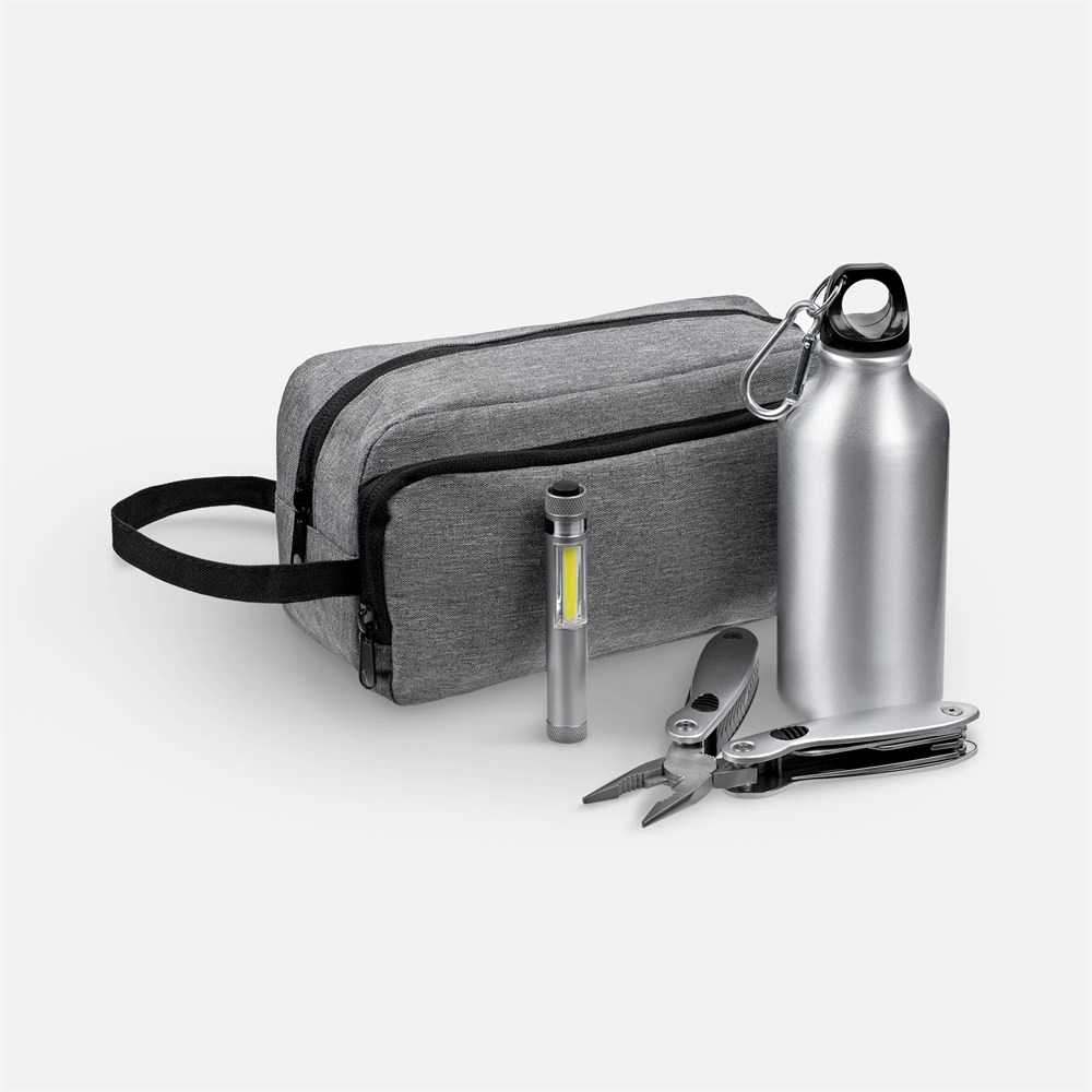 - Материалмультитул, фонарик, бутылка - алюминий; несессер - полиэстер