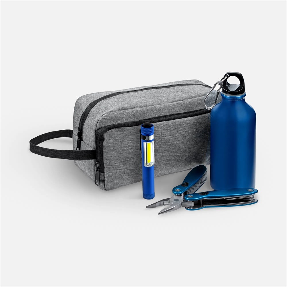 - Материалмультитул, фонарик, бутылка - алюминий; несессер - полиэстер
