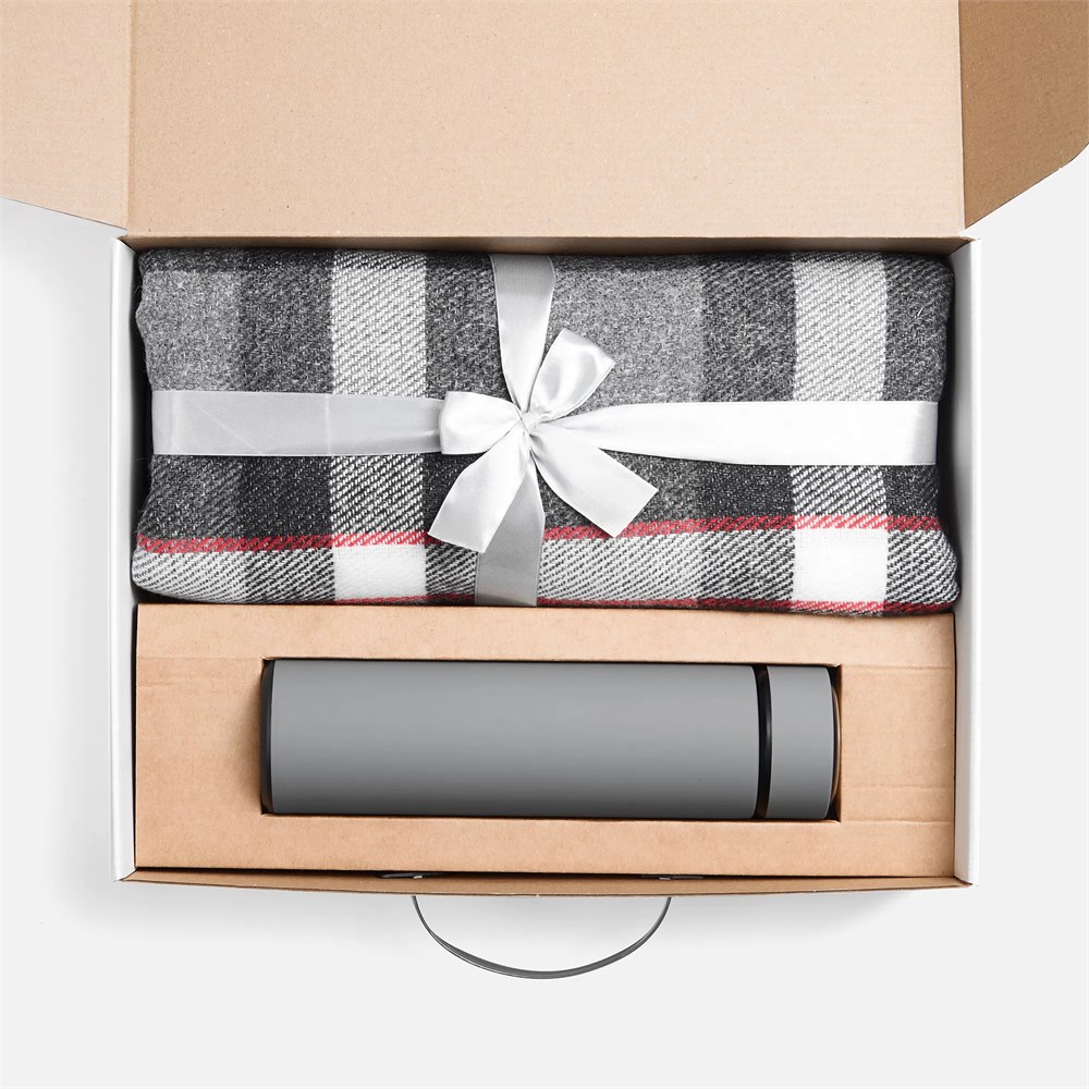 - Материалплед - шерсть, 15%; хлопок, 5%; полиэстер 60%; акрил, 20%, плотность 200 г/м?; термос - нержавеющая сталь, 304; покрытие софт-тач; коробка - картон