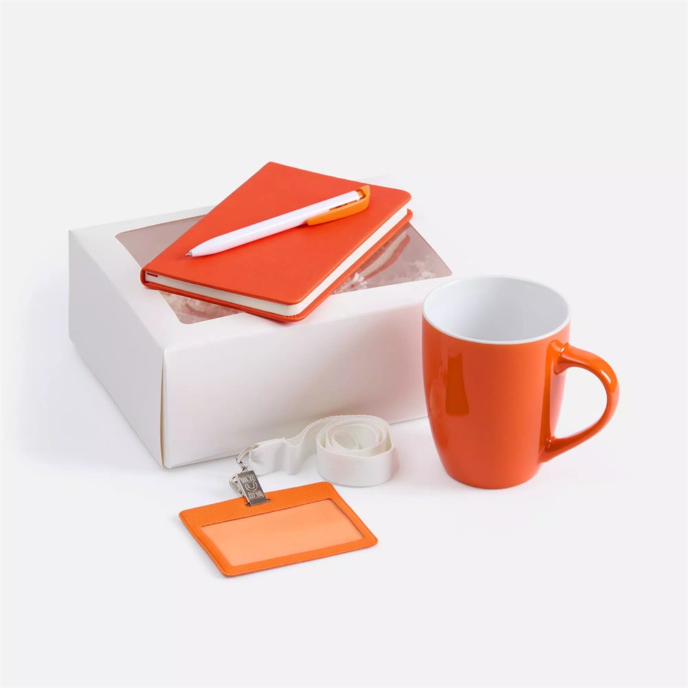 Лаконичный приветственный набор Hop In содержит все самое необходимое для успешной и быстрой адаптации нового сотрудника в команде. Это основные офисные принадлежности — блокнот и ручка — для подробной записи идей и планов; чехол для пропуска на ленте — для безопасности и идентификации; компактная кружка — для приятного перерыва в компании с новыми коллегами.