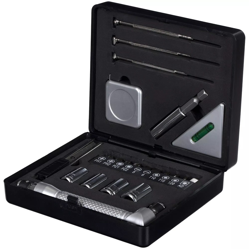 Каждая деталь — результат тщательно проведенных исследований, каждое сочетание материалов оптимально подходит для конкретного назначения. 22 предмета позволяют с легкостью произвести мелкий ремонт или выполнить точные измерения.