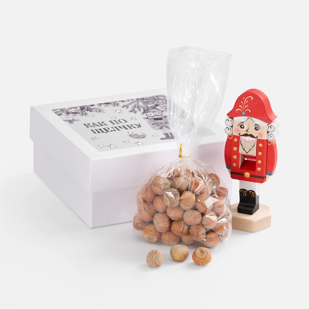 Могут ли чудеса случаться как по щелчку? Конечно! Праздничный набор позволит окунуться в сказочный мир детства. В аккуратной деревянной коробочке лежит настоящий орехокол — Щелкунчик, персонаж новогодней волшебной истории. С лесными орехами он справляется на раз.