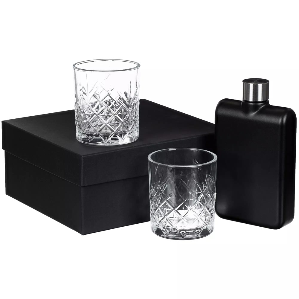 Стильная и практичная фляга вместе с элегантными стаканами станет прекрасным подарком для ценителей такого напитка, как виски. Благодаря матовой поверхности флягу особенно приятно держать в руке. Резной стакан удобной формы позволяет в полной мере насладиться вкусом, цветом и ароматом напитка.