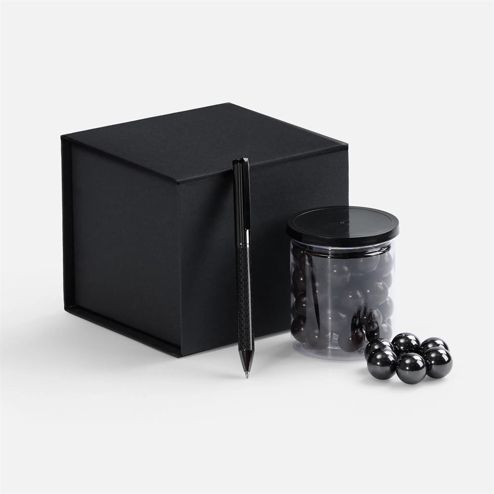 Когда мир вокруг становится слишком шумным, а мысли путаются, этот набор станет тихим убежищем от суеты и тревог. Хрустящий фундук в бархатистом шоколаде — не просто лакомство, а настоящее сенсорное удовольствие, которое способно возвратить вкус к жизни. Миниатюрный магнитный антистресс легко отвлекает от забот, помогая упорядочить мысли и успокоить беспокойный ум. А когда в голове рождаются важные идеи или просто нужно выплеснуть накопившиеся эмоции, удобная ручка поможет превратить хаос в четкие и осознанные строчки.