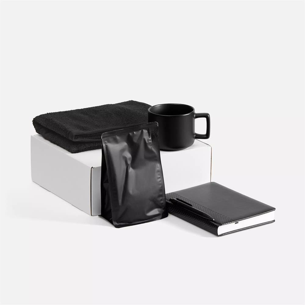 Большая матовая кружка создаст особое настроение и подарит истинное удовольствие от каждого глотка свежесваренного зернового кофе. Мягкое полотенце средней величины — для самых комфортных утренних ритуалов, а стильный ежедневник с удобной ручкой поможет начать день с важных заметок и планов.