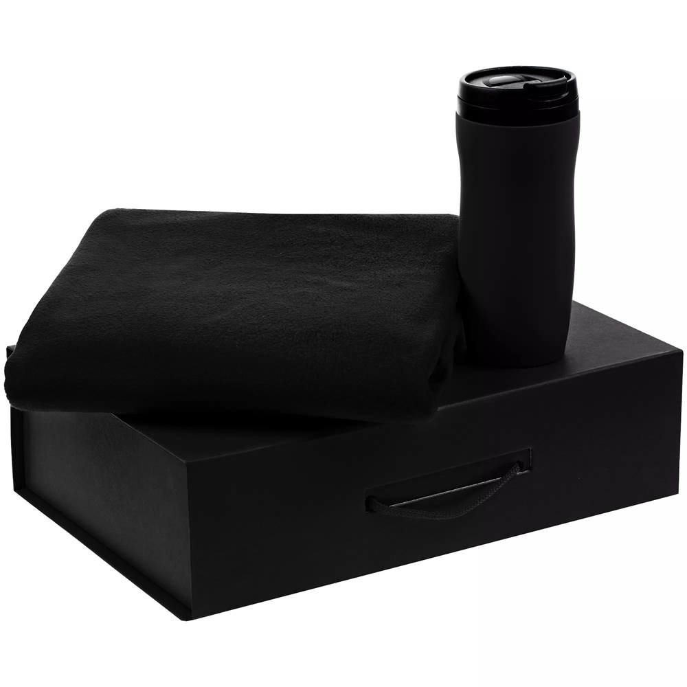 - Материалтермостакан - пластик, крышка, внутренняя колба; нержавеющая сталь, корпус; покрытие софт-тач; плед - флис, плотность 180 г/м?; коробка - переплетный картон; наполнитель - бумага