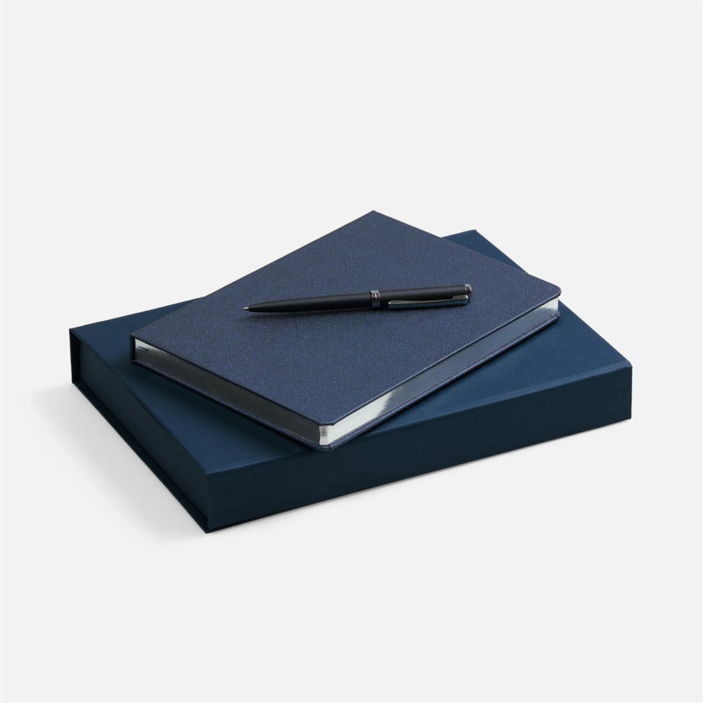 - 17239.40 Коробка Silk с ложементом под ежедневник 15х21 см и ручку, ver.2, темно-синяя