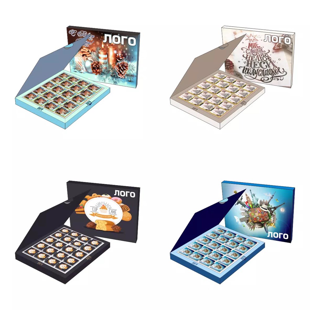 - Обертка с полноцветной печатью на каждой плитке шоколада.