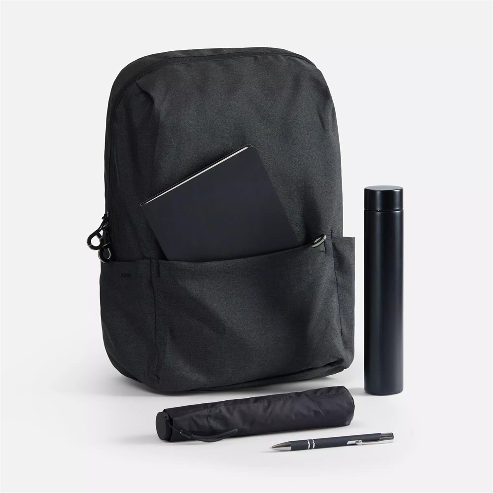- Размерырюкзак: 27x40x14 см; зонт: длина 49 см, диаметр купола 90 см, длина в сложении 22 см; термобутылка: высота 23,5 см, диаметр 4,3 см; блокнот: 15,5х21х1 см; ручка: 13,7х0,8 см