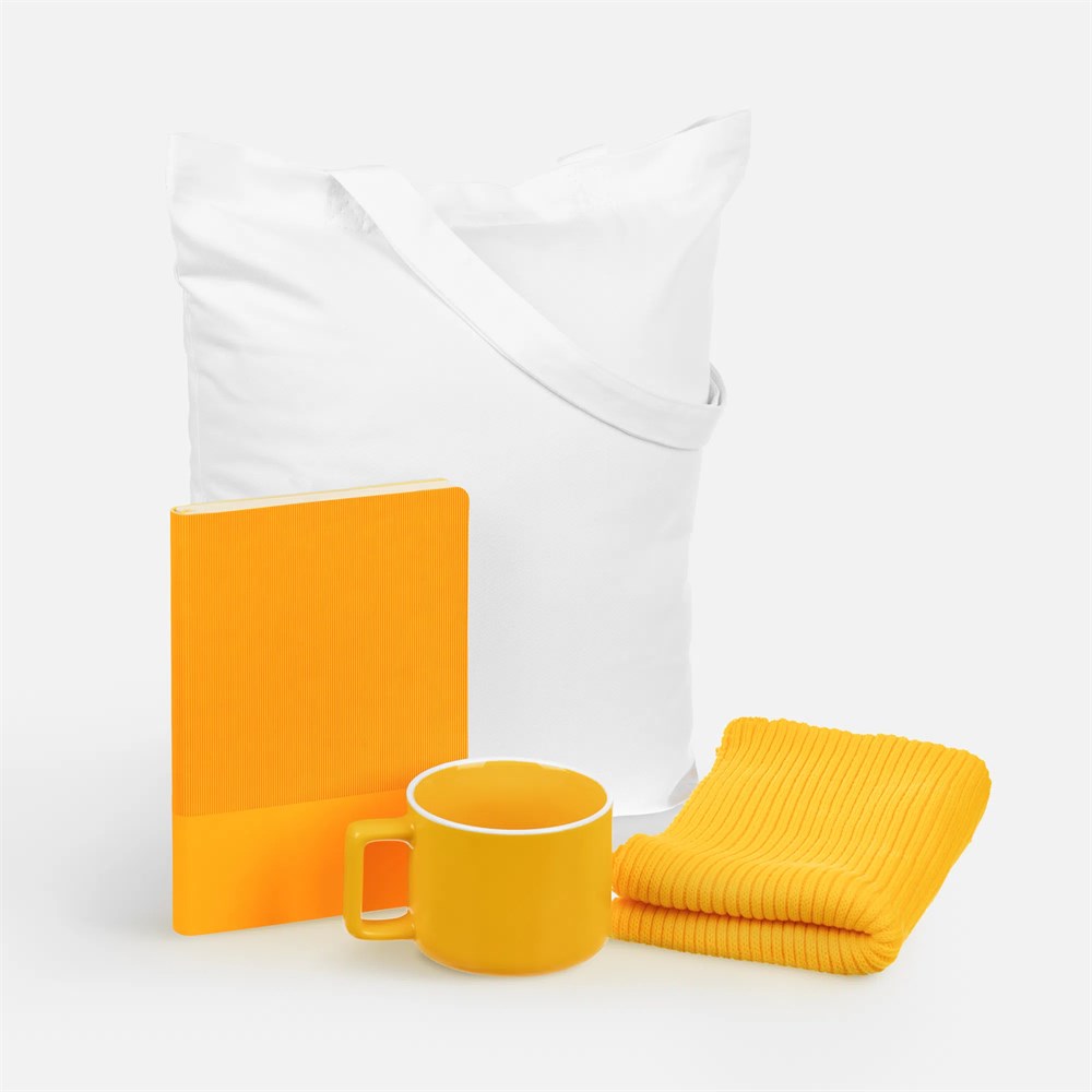 - Материалсумка - хлопок 100%; шарф - акрил 100%; ежедневник - искусственная кожа; кружка - каменная керамика