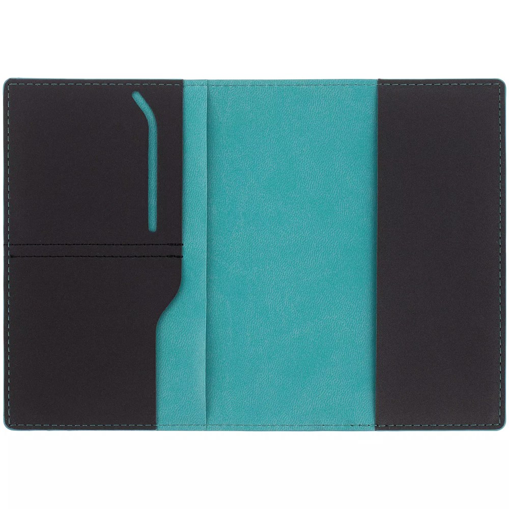 Имеет основное отделение для паспорта и 2 отделения для визиток или кредитных карт.